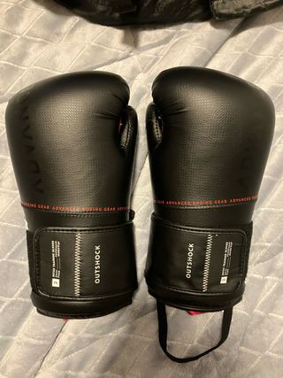 Par de guantes de boxeo Outshock en color negro 12lbs. Tienen 2 usos. - Cierre de velcro.