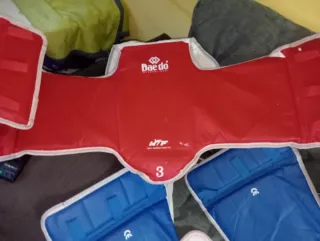 ADIDAS Peto de protección para taekwondo de la marca Daedo. - Color rojo y blanco. - Talla 3. - Incluye protectores azules. - Homologado WTF.