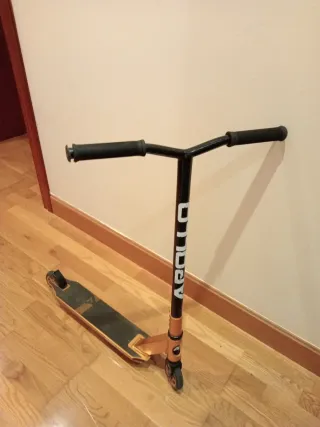 Patinete de la marca Apollo en buen estado, con muy poco uso. - Color dorado y negro. - Plataforma ancha.