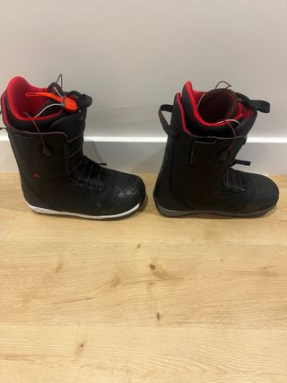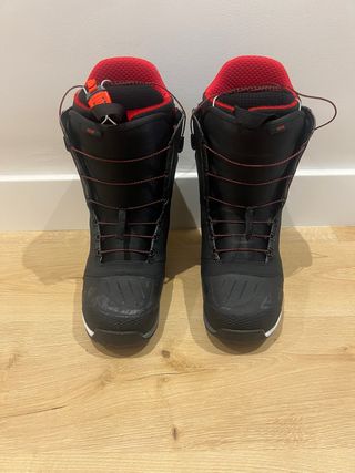 Botas de snowboard Burton ION Speedzone en talla 44. Diseñadas para ofrecer rendimiento y comodidad en la montaña. - Sistema de lazada Speed Zone. - Color negro con detalles en rojo. - Suela de goma EST. - Interior acolchado.