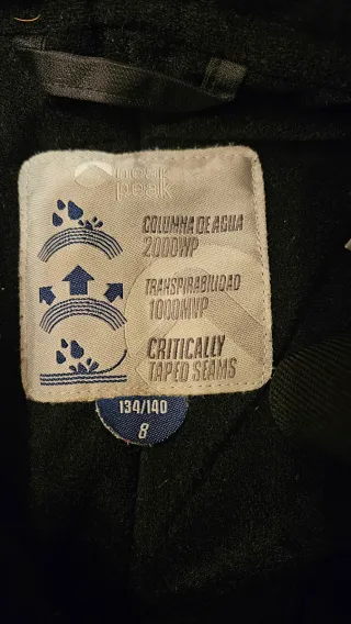 Pantalón de esquí en color negro, talla 8. Diseñado para la montaña. - Cremalleras en los bolsillos. - Tejido resistente.