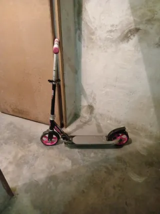 Patinete rosa en buen estado, ideal para niños. Ha sido poco utilizado. - Diseño clásico. - Ruedas de color rosa.