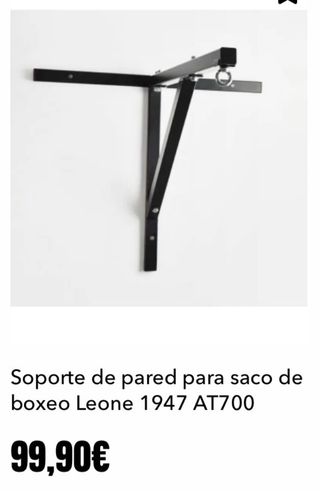 Soporte de pared para saco de boxeo de la marca Leone 1947, modelo AT700. Diseñado para una instalación segura y robusta. - Incluye tornillos y tacos. - Incluye anilla para colgar el saco.