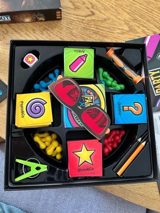 Juego de mesa Party & Co Extreme 3.0. Juego casi a estrenar, solo jugamos una noche. - Incluye cartas de categorías: Art&Co, Quiz&Co, Psyco&Co, Show&Co. - Componentes: gafas, lápices, reloj de arena, fichas. - Diseñado para fiestas y reuniones.