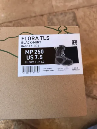Botas de snowboard Nitro Flora TLS en color negro y menta. Nuevas a estrenar. - Modelo: Flora TLS - Color: Black-Mint - Talla: US 7.5 / EU 38 2/3 / UK 6.0 - Referencia: 848577-001 - Fabricado en China, diseño en Italia.