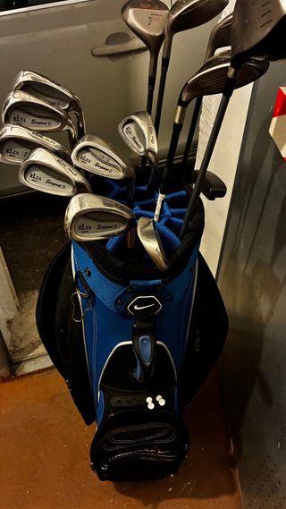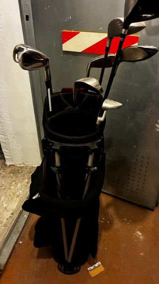 Set de palos de golf Wilson. - Incluye driver, maderas, putter, híbrido TaylorMade 5-24’, hierros 5,7,9 y sw. - Bolsa de golf negra.