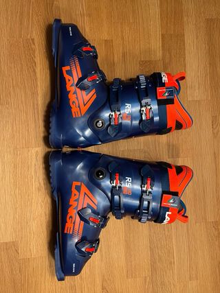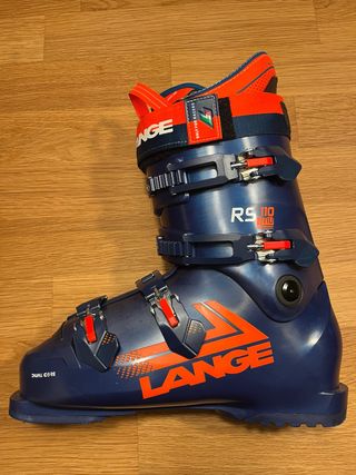Botas de esquí Lange modelo RS 110 MV para hombre. Diseñadas para un rendimiento óptimo en la pista. Talla esquí 28 (equivalente a talla 43 de zapato) . Están impecables con 1 día de uso. Se venden porque fue un regalo y no se acertó con la talla. - Color azul marino con detalles en naranja. - Cierres de hebilla ajustables. - Correa de velcro en la parte superior. - Logo de Lange en el lateral.