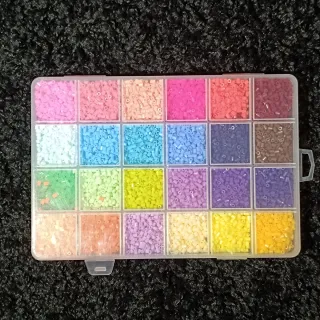 Lote de abalorios de colores variados para la creación de bisutería y pulseras. - Incluye varios compartimentos con diferentes colores y tipos de abalorios. - Ideal para manualidades y proyectos creativos.