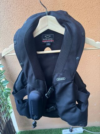 Chaleco airbag Hit Air en color negro, con poco uso (4 meses). - Incluye 3 bombonas. - Cierre con hebillas. - Sistema de airbag integrado.