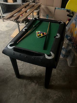 Mesa de billar pequeña, ideal para niños. Incluye tacos y bolas. - Diseño compacto. - Marca: Stars.
