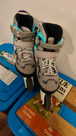 Patines en línea grises y turquesa