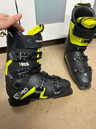 Botas de esquí Salomon X PRO 110 en color negro y amarillo. - Cierre con 4 ganchos. - Correa de velcro en la parte superior. - Suela de goma. - Logo de Salomon en el lateral. en buen estado! no leer: botas eski eskimo esqui esqui de travesia