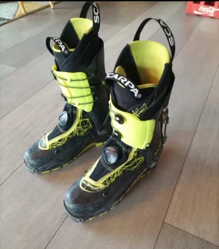 Vendo estas maravillosas botas de esquí de travesía o montaña. Skimo. SCARPA ALIEN RS en talla 27 que equivale a 41,5-42. Botas de alta gama muy ligeras. En buen estado. Presentan arañazos superciales. Botines en buen estado. Suelas Vibram y sistema BOA. Precio nuevas 450 euros. Ofertón de temporada por solo 175 euros 👌 envío incluido en el precio 👌 Precio NO negociable