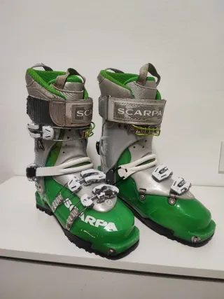 Botas de esquí de travesía Scarpa para mujer, talla 24 - 24,5. Equivale a 38. - Suela Vibram. - Cierre con hebillas. - 280mm de suela - Usadas dos veces