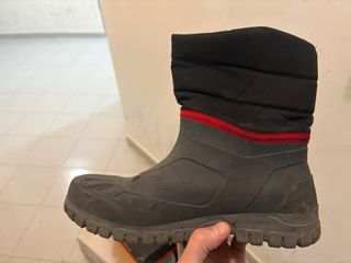 Botas de nieve Decathlon, ideales para mantener los pies calientes y secos en climas fríos. ** Son perfectas: buena suela, forradas por dentro, caña blanda y lo mejor es que son impermeables de verdad *** - Color negro con detalles rojos. - Suela de goma antideslizante. - Caña alta para mayor protección.