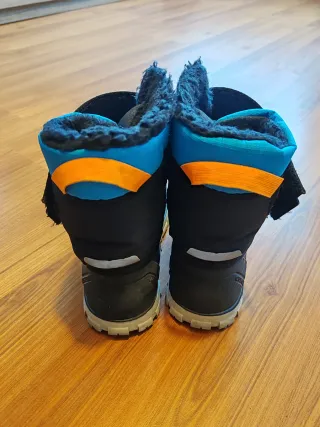 Botas de nieve Decathlon para mantener los pies calientes y secos. Las botas se han usado solo 4 veces, están nuevas. - Color negro con detalles en azul y naranja. - Cierre de velcro para un ajuste fácil. - Suela antideslizante. - Forro interior cálido.