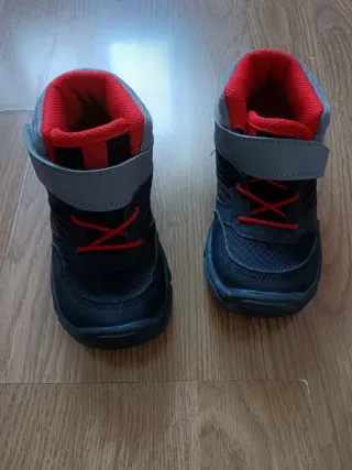 Botas de trekking para niño en talla 27. Perfectas para aventuras al aire libre. Marca decathlon - Cierre con velcro y cordones. - Interior acolchado en color rojo. - Suela de goma negra.