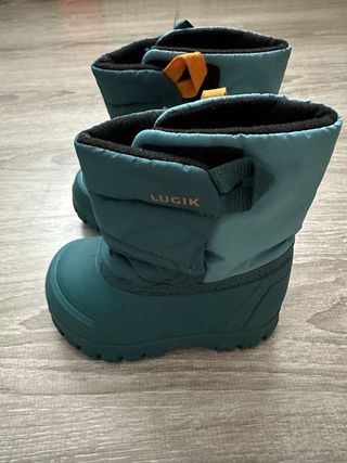 Talla 20/21 Botas de nieve para niños, perfectas para mantener los pies calientes y secos en invierno. Tienen un diseño acolchado y un cierre de velcro para un ajuste fácil. - Color verde. - Marca LUGIK / Decathlon - Cierre de velcro. - Interior forrado.