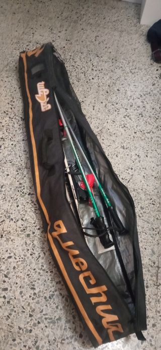 Esquis freeride wedge 131cm, con fijaciones salomon, palos salomon 120cm, bolsa transporte con bolsillos varios. Regalo otro juego de palos de 120cm. Estan perfectos, fijados para botas 38/40 , tengo botas tambien, si interesa