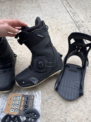 Vendo botas y fijaciones de la marca Burton sistema stepOn. Son del numero 43,5. Tallan justo y las vendo por comprar unas mas grandes. Tienen uso pero estan en perfectas condiciones. Van con la tornilleria original.
