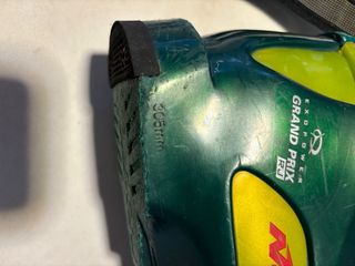 Botas de esquí Nórdica Grand Prix en color amarillo y verde. - Cierre con 4 ganchos. - Correa de velcro superior. - Diseño deportivo. - talla 26-26.5 - necesita cambiar una pieza del talón por una nueva