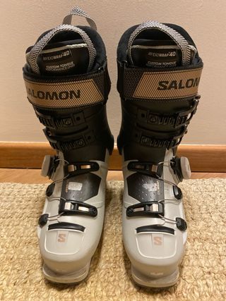 Botas de esquí Salomon S/Pro con sistema BOA. - Modelo S/Pro BOA 105 W GW. - Talla 25/25.5. - Cierre BOA. - Diseño en blanco y negro. Están nuevas con el ticket incluido. Las vendo porque me van una talla grande.