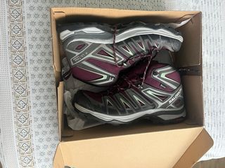 Botas de montaña Salomon en color burdeos y gris, con detalles en verde lima. Perfectas para senderismo y actividades al aire libre. Precio original 112 euros Usadas en dos ocasiones. vendo porque me van grandes. - Marca: Salomon - Modelo: X Ultra Pioneer - Talla: 42 - Tecnología: Gore-Tex - Cierre: Cordones - Caña alta