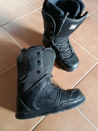 Botas de snowboard DC Shoes en talla 44. - Color negro. - Cierre con cordones. - Diseño robusto y cómodo. Se han usado media temporada porque me quedan grandes.