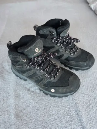 Botas de montaña para niños, talla 36. Dos usos, se quedaron grandes para mi hija. Muy rígidas ideales para usar con crampones, de hecho me costó mucho encontrar una bota resistente al agua y cramponable para niños.