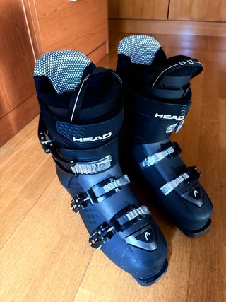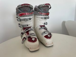 Botas de esquí Head en talla 25 - 25.5 Usadas pero bien conservadas, sin mucho desgaste, las vendo porque me van grandes - Cierre con 4 ganchos y cinta. - Diseño en blanco y granate. - Tecnología Heat Fit.