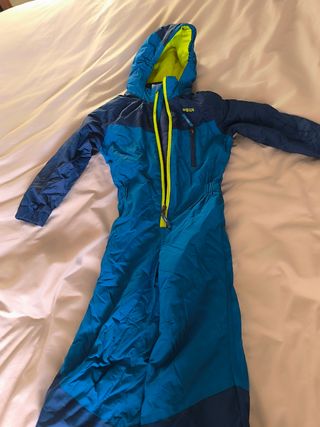 Mono de esquí para niño de la marca Wedze, talla 3-4 años. Ideal para disfrutar de la nieve con comodidad. Talla más bien grande. Un solo uso, como nuevo. - Color azul y flúor. - Cremallera frontal amarilla. - Capucha integrada. - Bolsillo con cremallera en el pecho para forfait. Se puede hacer pack con las botas, en el perfil.