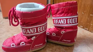 Botas de esquí rojas de la marca Styl Grand Grand Boot - Talla 32/34. - Diseño tipo Moon Boot. - Cierre con cordones. - Banda lateral con logo GRAND BOOT.