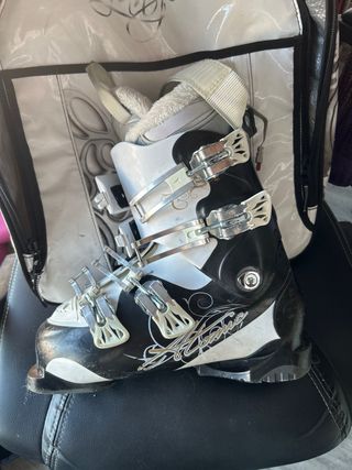 Botas de esquí de la marca atomic. Se mas compre a una chica y resultaron quedarme grandes, no las llegue a usar. Si necesitan más fotos escribirme. - talla 25,5 - Color blanco y negro. - Diseño con logo plateado. - Detalle gráfico en relieve.