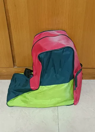 Bolsa de deporte con diseño multicolor. Por la parte superior hay una zona que el color ha quedado descolorido, ver fotos. - Compartimento principal amplio. - Bolsillo pequeño en un lateral y otro grande en la parte trasera. - Correa ajustable para el hombro.
