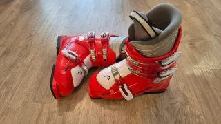 Vendo botas de esquí HEAD junior, talla 24 / 24.5, con longitud de suela 281 mm. Están en muy buen estado, muy cuidadas y con poco uso. Los cierres funcionan perfectamente y la carcasa está sólida, sin grietas ni roturas. Presentan únicamente señales normales de uso, tal y como se aprecia en las fotos. Ideales para niño/a que necesite unas botas cómodas y de buena marca para esquiar. Detalles: Marca: HEAD Talla: 24 / 24.5 Longitud de suela: 281 mm Estado: Muy buen estado Cierres y ajustes en perfecto funcionamiento