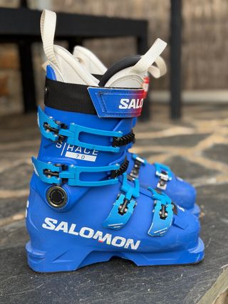 Botas de esquí Salomon S/Race 70 en color azul. Utilizadas solamente una temporada (24/25). Talla 22,5 mondopoint (aprox 35-36) - Botas junior de competición - Cierre con 4 ganchos - Hebillas ajustables Entrega en Barcelona o en La Cerdanya.