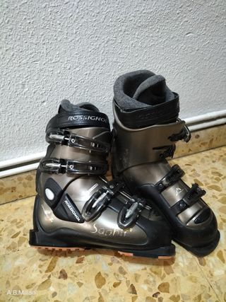 Botas de esquí Rossignol Saphir para mujer. Talla 38 Diseñadas para ofrecer comodidad y rendimiento en la pista. - Color: Bronce y negro. - Cierre con 4 ganchos. - Interior acolchado.