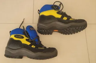 Botas de barranquismo de la marca Seland. Modelo Guara. Talla 39. Usadas solo 2 ocasiones, con pequeñas marcas de uso en la protección del talón, como se ve en la fotos. Resto están como nuevas. - Sistema de drenaje de agua - Color negro, azul y amarillo. - Cierre con cordones. - Caña alta para mayor protección. Barranco. Barranquismo. Deporte montaña. Calzado. Seland. Mujer. Hombre. Niño.