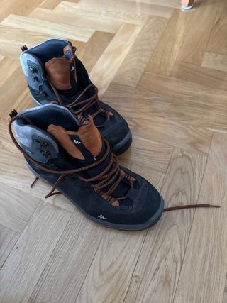 Botas de montaña de caña media, ideales para senderismo y actividades al aire libre. Diseñadas para ofrecer comodidad y protección. - Exterior de ante y material sintético. - Cierre con cordones. - Suela de goma adherente. - Detalle de color naranja en cuello y ojales. talla 42 vender en persona