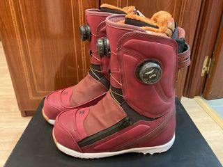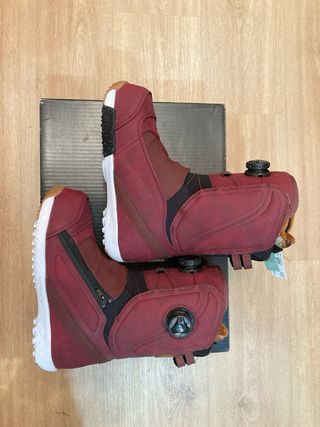Botas de snowboard DC Mora para mujer. Cierre doble BOA para un ajuste rápido y seguro. Nuevas, se venden por confusión de talla - Color: Burdeos - Cierre: BOA - Talla: 40 (8.5 US) - Marca: DC Shoes