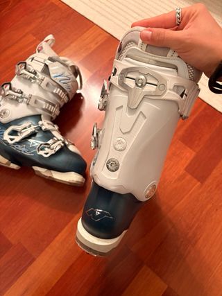 Botas de esquí alpino Nordica en color blanco y azul. Perfecto estado. Usadas máximo 5 dias. Talla 23.5 (equivalente a un 36.5/37) - Cierre con ganchos. - Diseño deportivo. Las vendo porque me van pequeñas.