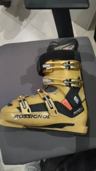 Conjunto de: Esquís Rossignol amarillos 160cm con aclajes Bastones Scott 115cm Botas Nórdica 26.5 (41 aprox) En estado usado pero aceptable, ideal.para iniciarse.