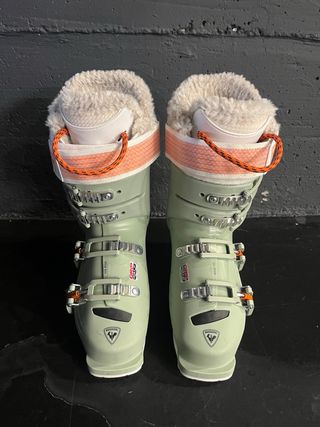 Botas de esquí Rossignol All Track Pro 90 en talla 23.5. - Color verde pálido. - Cierre con hebillas. - Forro interior de pelo sintético.