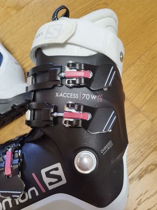 botas Esqui Salomón XAccess 70 W, ideal para chica ado, nivel principiante - intermedio talla ~ 38-39 mundopoint 25, usadas 3 temporadas, buen estado. Pack posible con esquís Fisher MTN86 (anunciados aparte, consultar). Hago descuento si entrega en manos.