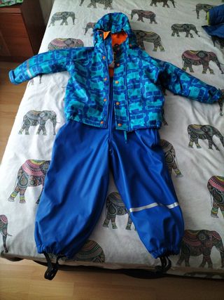 Traje niño hasta tres años para la nieve forro polar ,cintas sujeción para botas de agua y tirantes regulable