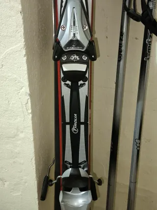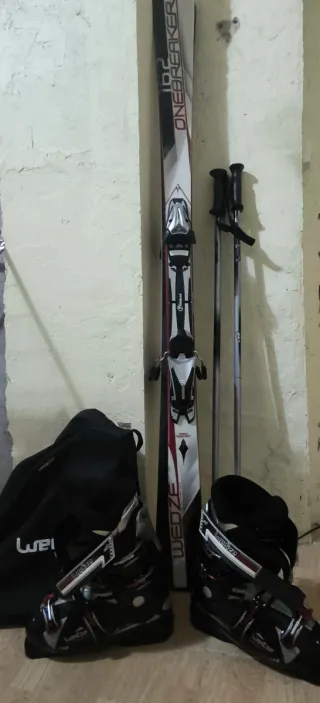 Conjunto completo para esquiar, ideal para disfrutar de la nieve. - Esquís marca Wedze. - Botas de esquí negras con cierres.talla 41 - Bastones de esquí negros.