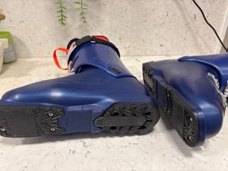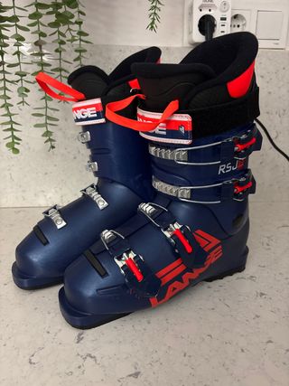 Bota de esquí para niño de la marca Lange. - Color azul con detalles naranjas. - Cierres de hebilla metálica. - Interior negro. - Usadas 8 o 9 días