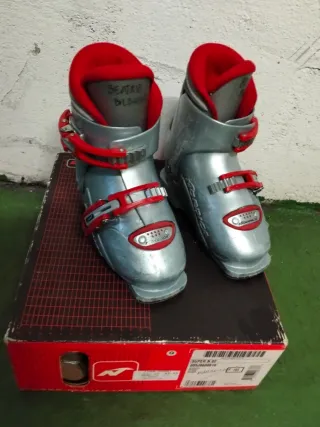 Botas de esquí de la marca Nordica. Diseñadas para ofrecer comodidad y rendimiento en la pista. Talla 24-24,5 equivale a 38-38,5 - Cierre con hebillas. - Diseño en color gris y plateado.