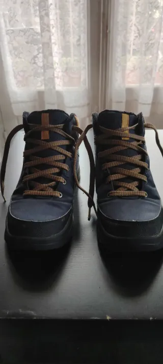 Botas de montaña para niño en talla 40. Son de color azul con detalles en marrón. - Cierre con cordones. - Caña alta para mayor sujeción. - Suela de goma. Son de mis hijos y apenas las han usado