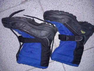 Botas de invierno impermeables, apreski o senderismo invernal. Perfectas para mantener los pies secos y calientes en el frío. Muy cómodas. Niño o niña. - Talla 35 - Diseño en color azul y negro - Cierre con velcro para un ajuste fácil. - Suela de goma antideslizante. Algunas rozaduras en la puntera pero la suela está perfecta. Hago lotes y envíos con lo que te guste de mi perfil. Envío o recogida en Villalba P29, Galapagar, Las Rozas, El Escorial, Moncloa, Nuevos Ministerios, Atocha y más.